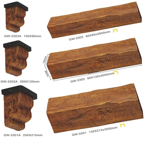 Faisceaux de bois faux polyuréthane pour la construction, vente en gros, prix bon marché